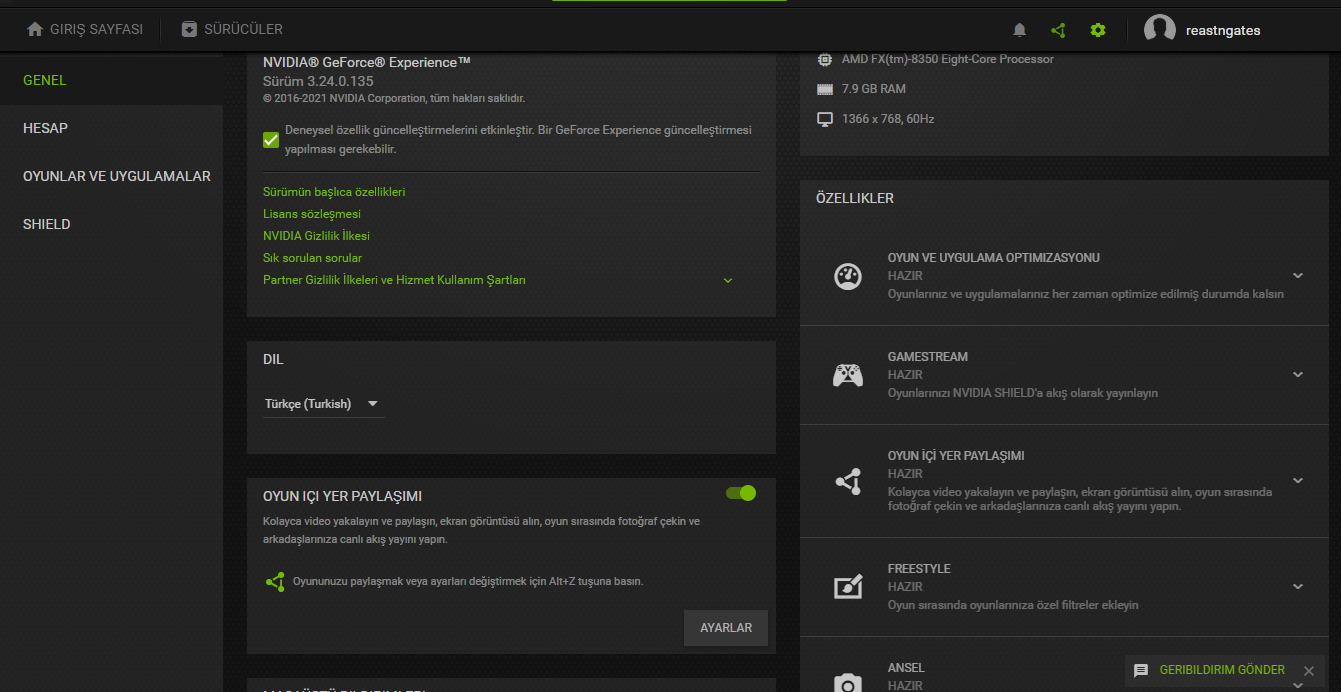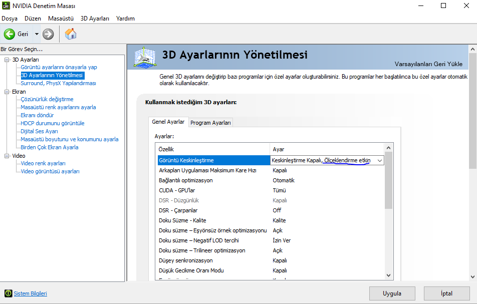 Selam arkadaşlar. GTX770 ekran kartım var ve NIS diye bir şey duydum. Bu NIS GTX770'de var mı bilmiyorum bile varsa nasıl aktif edebilirim? Bu arada monitörümde HDMI girişi olmadığı için dönüştürücü ile bağlıyorum. Ekranım 1366x768 çözünürlüklerinde. Ekteki fotoğraflarda altını çizdiğim ayarı açınca "Çözünürlük değiştirme" sekmesine ölçekleme çözünürlüğü geliyor ama bunu açında oyunlarda paylaştığım videodaki gibi sol üstte NIS yazısı çıkmıyor. GeForce Experience programında da gözükmüyor