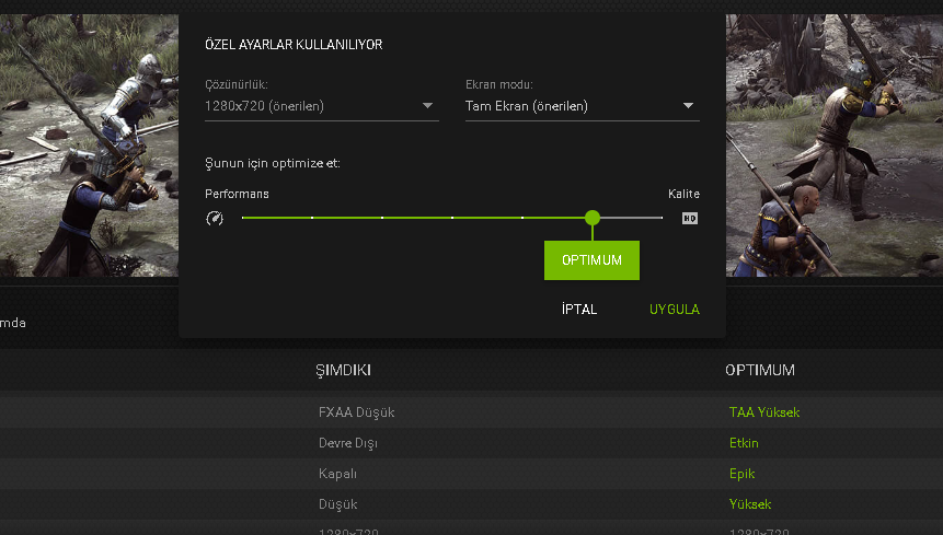 Sisteminin en ideal ayarlarını sağlar. Kaldırabileceği en uygun ayar demiyelim de en optimum ayarlar diyelim. Ben hep bu optimum ayarlarda kullanıyorum öneririm.Arkadaşlar bir oyuna tıkladım ve optimize et ayarıyla karşılaştım bu ayar oyuna benim sistemimin kaldırabileceği en uygun ayarlara mı getiriyor ne yapıyor?
