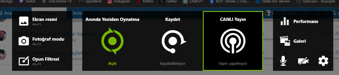 NVIDIA'nın kayıt programı bazen sebepsiz yere kayıt almıyor. Alt+Z ye basınca açılmıyor bile. Arada sırada oluyor.