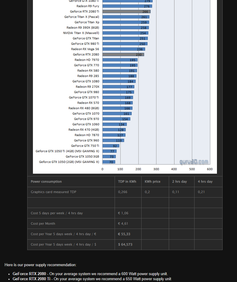 Bu değerler nedense bana mantıksız geliyor. Bu kart en ağır oyunda 2K'da 300W bile çekse sistemin toplam harcadığı güç 400-450W olur. Peki neden 550W bir PSU yetersiz kalıyor?