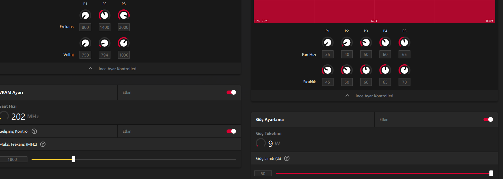 Bu arada ekran kartına +%50 verip 2000 MHz 1030mV vermek ekran kartına undervolt yapmak demek değildir. Kartın gücünü TDP'nin üzerine + %50 artırıp frekans ve voltaj girmekten başka bir işe yaramaz. Siz bu şekilde ekran kartının güç tüketimini direkt olarak %50 artırıp voltaj düşürüp undervolt yaptığınızı sanıyorsunuz ama gerçek öyle değil. FurMark 0xmsaa 1080p testine girin çekilen güç tüketimine bakın ne demek istediğimi anlayacaksınız. Gereksiz yere 2-3 FPS için kart fazladan oyun ve uygulamaya göre %50 güç çekiyor.