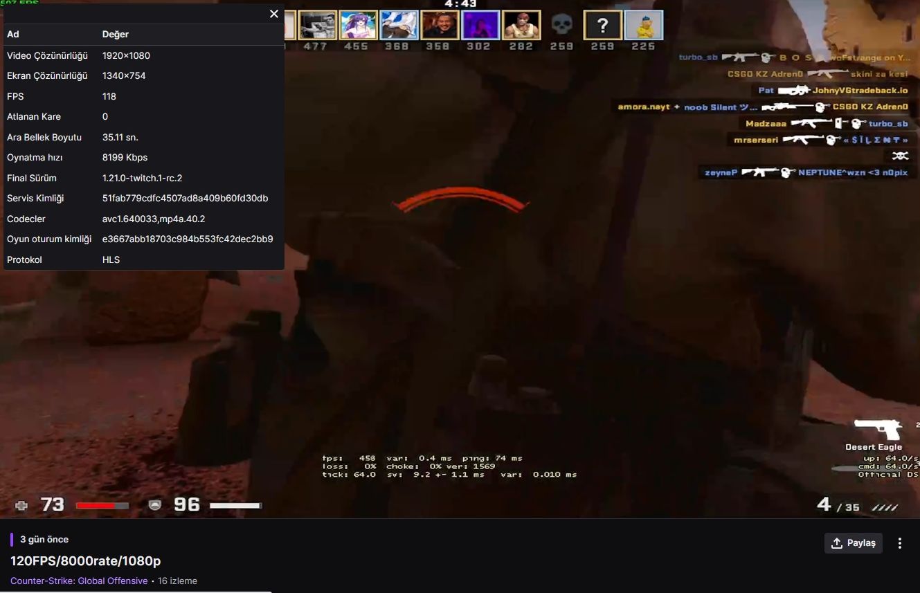fark ettiğim bir diğer şey ise bu ayarlarla aimbotz girdiğimde herhangi bir sorun çıkmıyor ama offical serverlara girince sıkıntı çıkmaya başlıyor ondan dolayı sorunun belki de ekran kartlarından değil internetimden olduğunu düşünmeye başladım ama o noktada da upload hızım 15 ise neden 6000 bitrate böyle bir internet sorununa sebebiyet versin sorusu beliriyor kafamda.