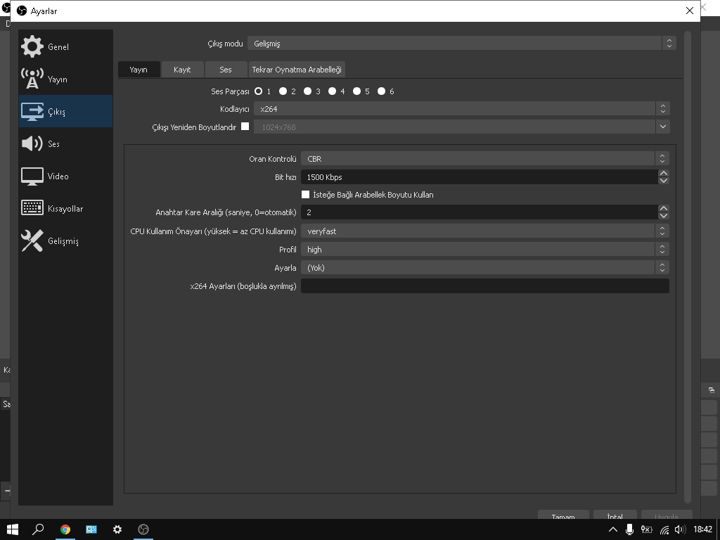 Anahtar kare aralığı herkes 2 olacak diyor. Bitrate 2500 yapmıştım zaten aynı sorun yine devam ediyor üstte bahsettim ondan. Video ayarları da böyle.