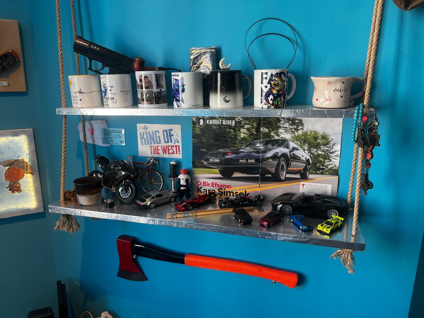 Aynı anda bu kadar hobiyi sığdırmaya çalışınca yetmiyor tek bir oda. Ama onun yanı sıra biraz da zevk meselesi. Odanın her yanındaki eşyalar bana birşeyler anımsatan şeyler, her birinin anısı var. ondan dolayı bana sadece karmaşadan ziyade anılarım canlanıyor.