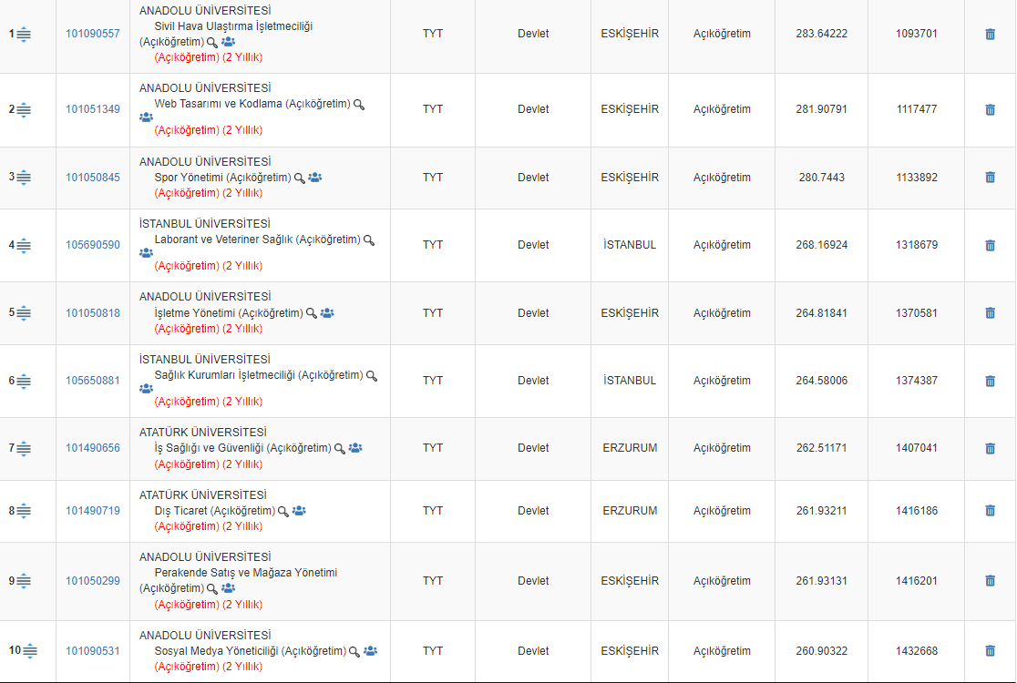 Esenlikler, Türkçe öğretmenliği 2. sınıf öğrencisiyim ekran görüntüsünde de görüleceği üzere listemde bulunan ön lisans programlarını görmektesiniz.
