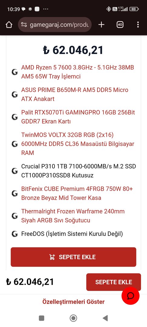 Merhaba, 1-2 ay içinde yeni bir sistem alacağım malum 2060 yardım çığlıkları atmaya başladı. Fiyatı en uygun 5070 Ti içeren sistem bu (normalde 5070 ama 5070 Ti'ye yükseltme seçeneği var.) Fiyat konusunda rahat olduğu için özelleştirmeler yaptım fakat seçtiğim parçalar konusunda bir öneriniz var mı? Kasayı sırf akvaryum diye seçtim ama beyaz mesela. Önerileriniz varsa veya tamamen başka sistem öneriniz varsa onlara da açığım.