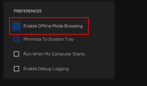 Tercihler bölümünün altında Çevrimdışı Mod Taramayı Etkinleştir kutusunu işaretleyin. Tercihler bölümünün altında Çevrimdışı Mod Taramayı Etkinleştir kutusunu işaretleyin.