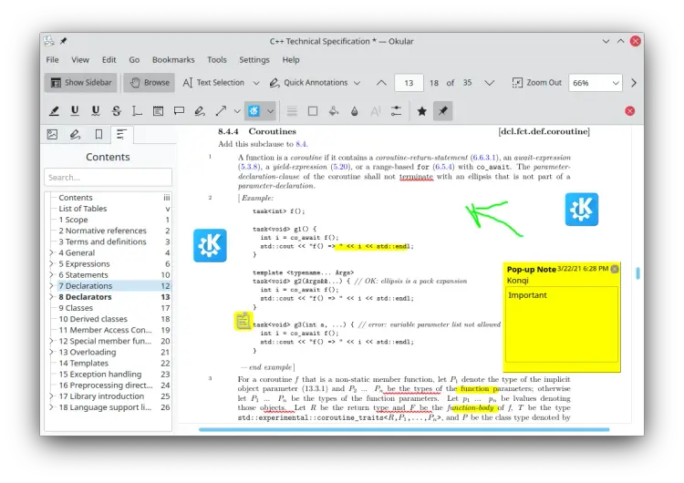Okular for Linux - KDE tarafından geliştirilen açık kaynaklı belge görüntüleyici.