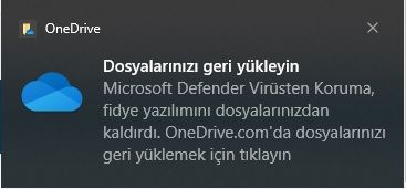 Arkadaşlar bilgisayarıma 17 Ekim'de fidye virüsü bulaştı ve tüm dosyalarımı şifreledi. İki üç gün sonra OneDrive'dan bildirim geldi ve fidye yazılımının dosyalarımdan kaldırıldığını, dosyalarımı geri yüklemek istiyorsam geri yükle seçeneğine basmamı söyledi. Geri yükle seçeneğine basıyorum, geri yükleme sekmesine yönlendiriyor. Tam dosyaları geri yükleyecekken beni Support sayfasına yönlendiriyor. Yani sanki geri yükleme kısmına ulaşmama izin vermiyor, beni direkt başka sekmeye yönlendiriyor. Bunun sebebi nedir? Geri yükleme yapabilmek için ödeme mi yapmak gerekiyor?