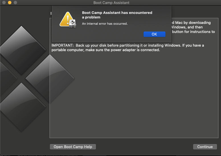 Bootcamp çok denedim. Aşağıdaki gibi hata alıyorum sebebini de bilemiyorum.