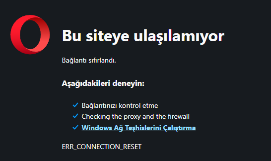 Merhaba. Bazı sitelere giriş sağlarken bu siteye ulaşılamıyor hatası çıkıyor önüme. YouTube'deki çözüm videoları ne işime yaradı ki zaten, alakasız işlemler yaptırıyorlar. Çözüm yolunu bilen varsa yardımcı olursa sevinirim.