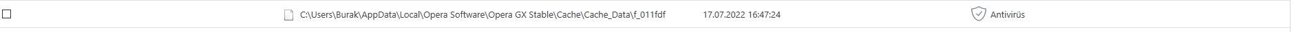 Yaklaşık bir saat önce TRT1 sitesi üzerinden voleybol maçını izlerken Windows Defender virüs bulundu uyarısıyla Opera GX'in Cache Data klasöründe bir dosya bulundu.