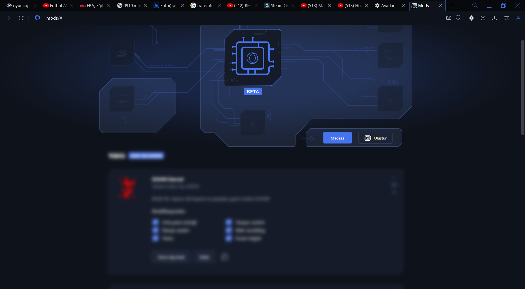 Opera GX Mod ekranını açınca indirdiğim modlar dahil olmak üzere bulanık oluyor. Çözümü nedir?