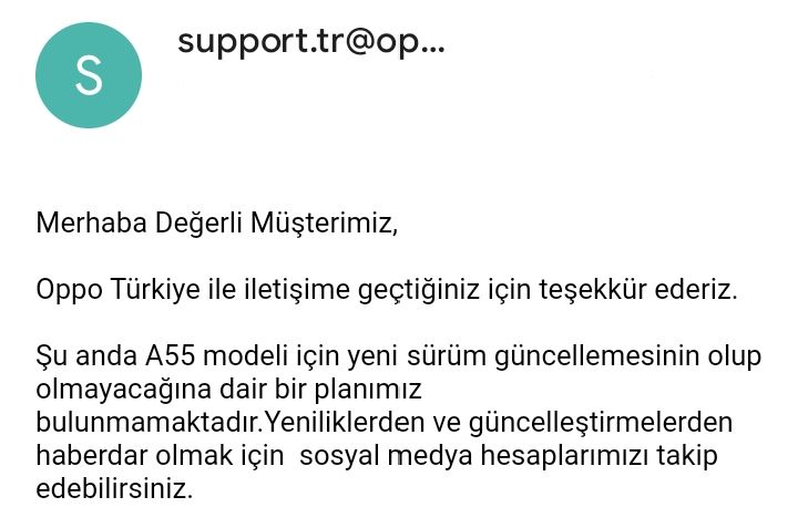 Resmi sitesinden mi okudunuz?Anlıyorum aksaklıklar olabilir ama OPPO'ya yazdığım zaman "OPPO A55 modelinin Android 12 alacağı henüz netleşmemiştir ve tarihi belli değildir" deniliyor.
