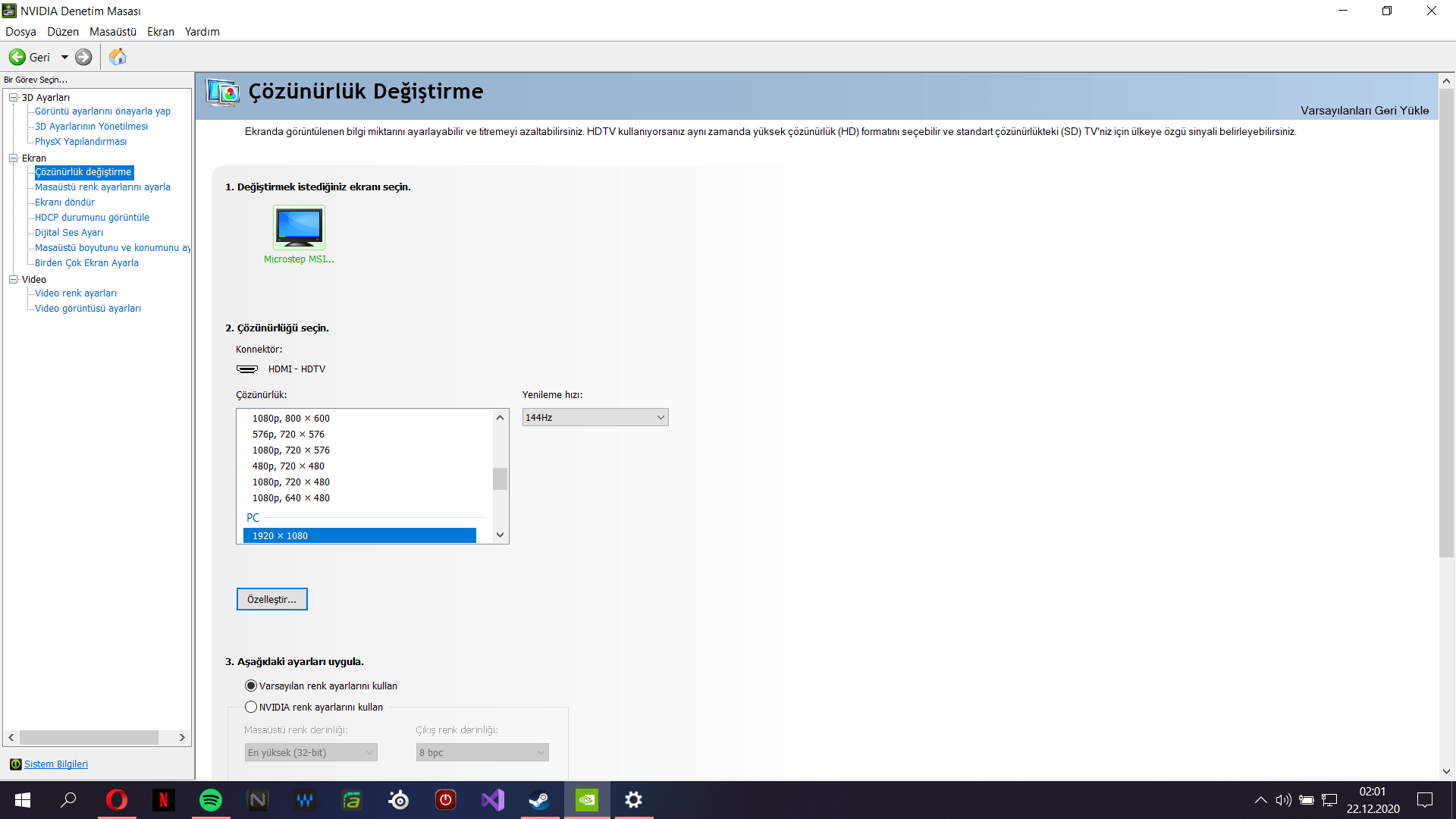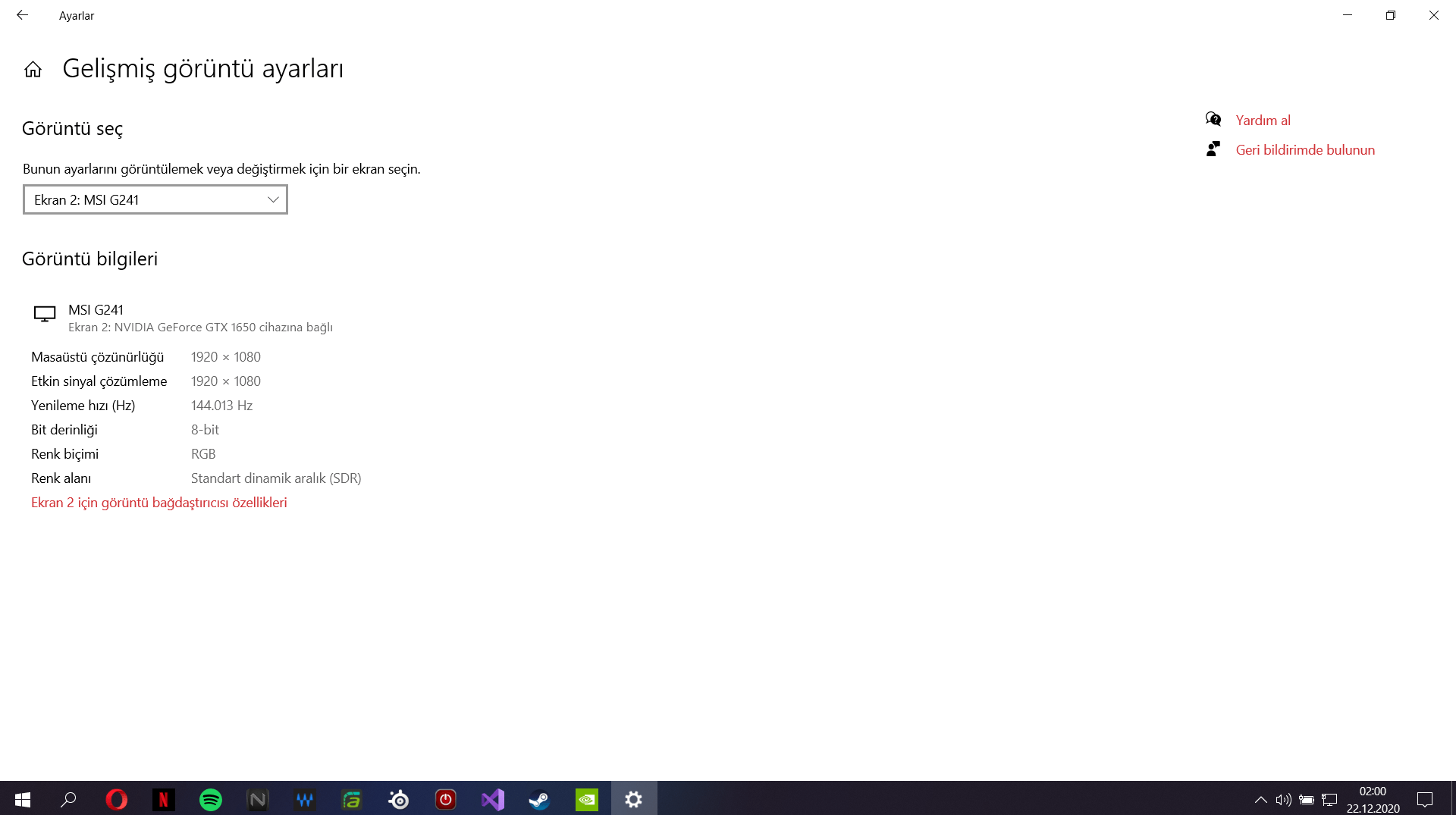 Malum birçok laptopta Display Port olmadığı için monitörü HDMI ile kullanacağız. HDMI 1.4 sürümü ve üzeri sürümler 144 Hz görüntü aktarımını desteklemekte. Aldığım monitörün içinden çıkan HDMI kablosu ile laptopu, monitöre bağladığımda 144 Hz'i sorunsuz olarak alabiliyorum.