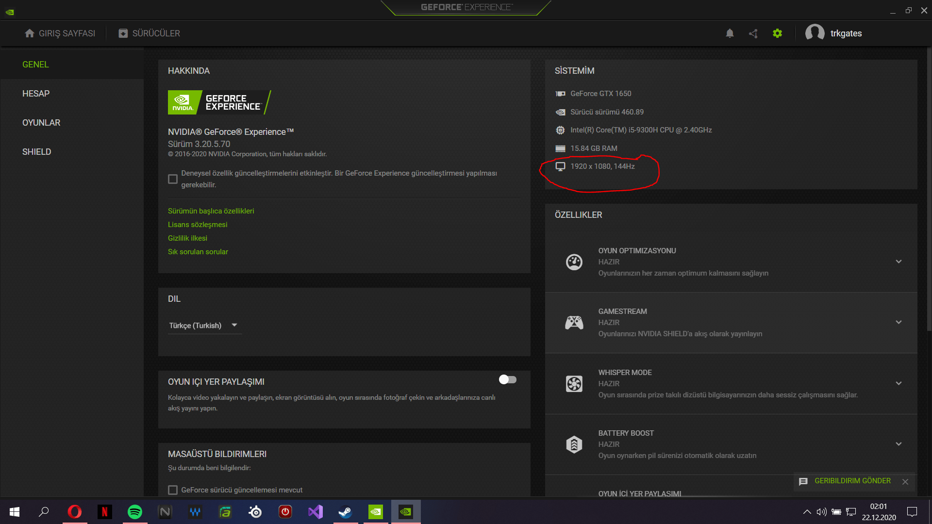 Kullandığım laptop: Acer Nitro-5 AN515-54 satın aldım. Benim aldığım sistem i5-9300H/16GB/1TB+256SSD/Nvidia GTX1650-4 GB.