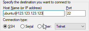 PuTTY'ye gelip host Name'e username@ip-adresi şeklinde yazın.