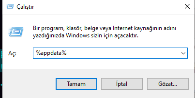 - "% AppData%" (tırnak işaretleri olmadan) yazın ve Tamam'ı tıklayın.
