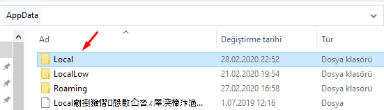 - Local klasörünü açın.