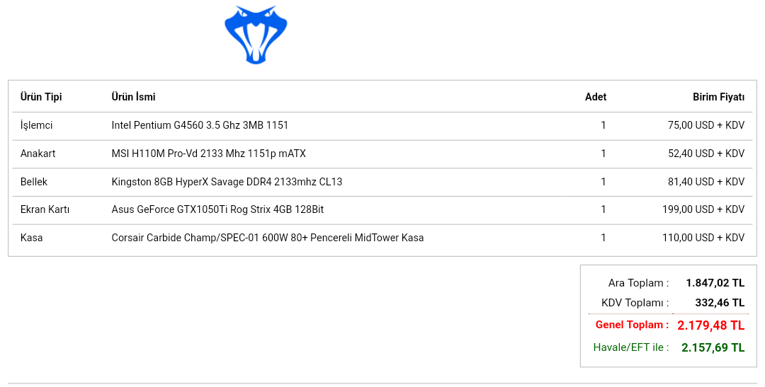 -RAM olarak Kingston 8GB Hyperx Fury Black DDR4 2133MHz CL14 PC Ram bunu tercih edebilirsin arada 10TL gibi bir fiyat farkı var ve bu RAM senin seçtiğinden 1 CL değeri daha az, oyunlarda az da olsa performans artışı olur. :)