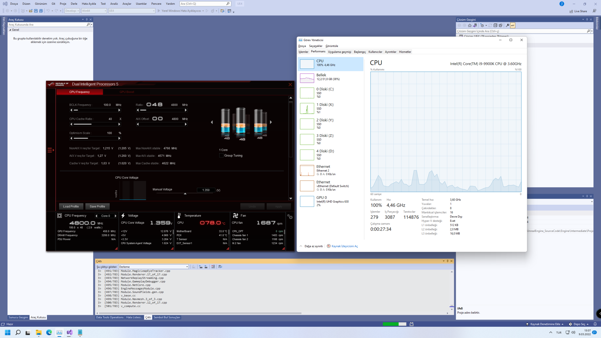 4.8 GHz 1,35 Volt'ta en son 79 derecede kalıyor. Tabii frekans düşümleri oluyor. Anlık 4.2 GHz'e gelebiliyor.
