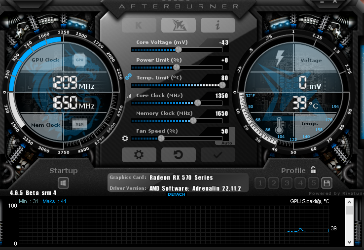 MSI Afterburner ayarlarından voltaj kontrolünü açın.