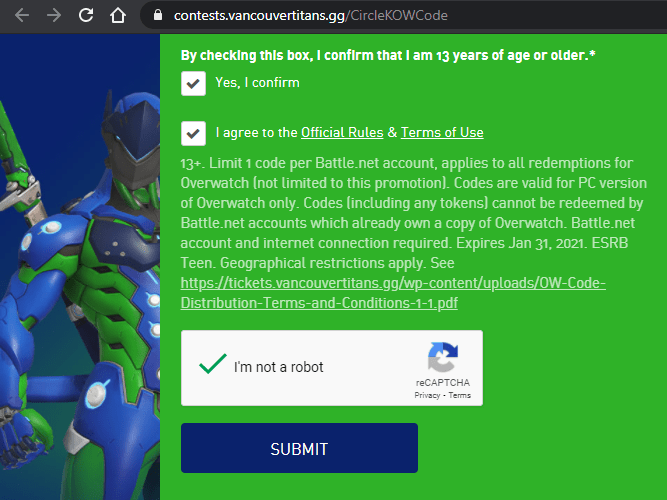Adım 3: Robot değilim doğrulaması yapın ve Submit butonun basın.