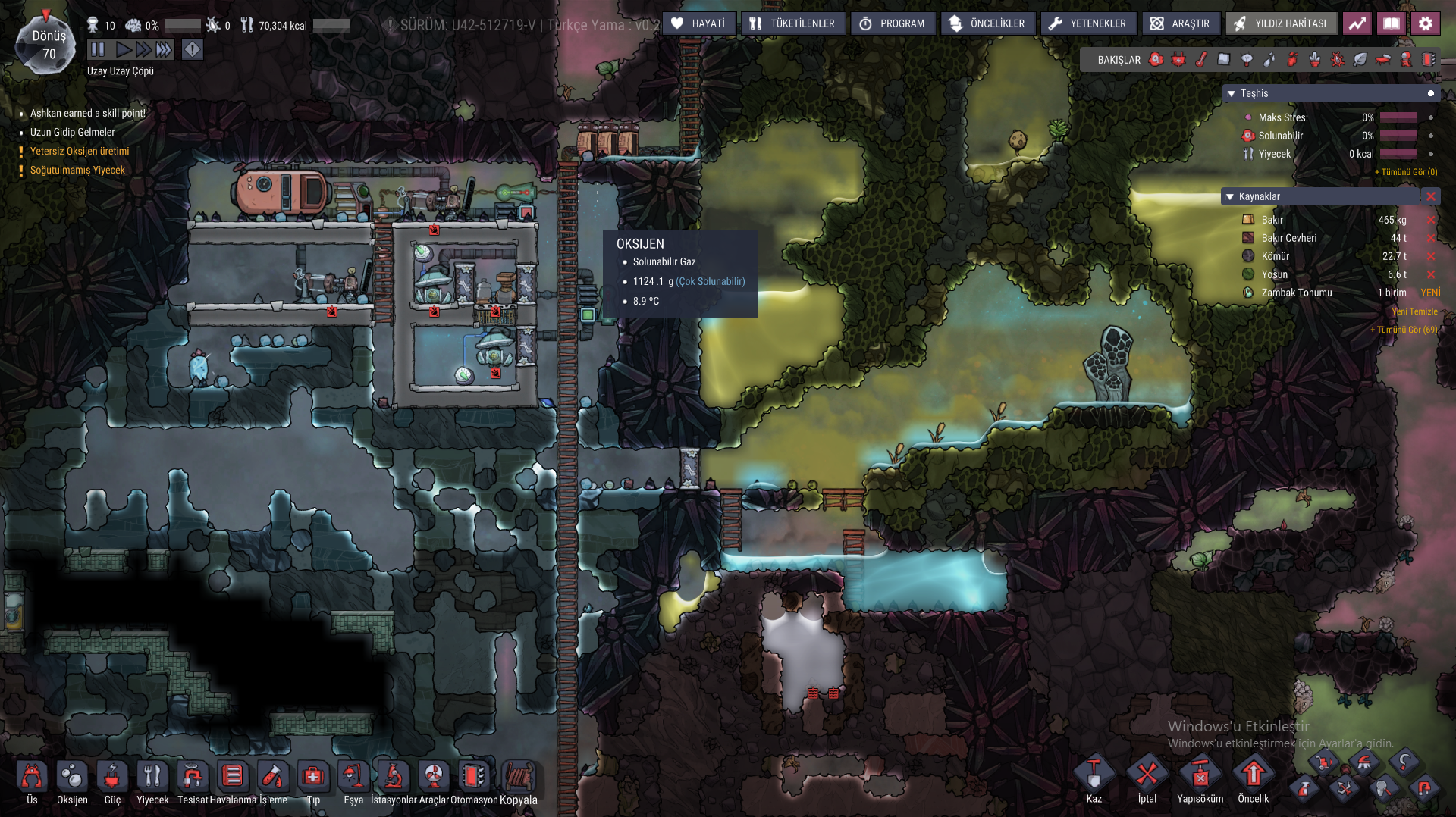 Oxygen Not Included oyununu eskiden oynuyordum. Son zamanlarda tekrar sardım. Çok güzel bir haritada başlangıç yaptım. İlk denememde 200. güne kadar gelmeyi başarabildim. Onda da sıkıntılar baş gösterince artık yeniden aynı haritada oynamaya karar verdim şu an üssüm gayet iyi durumda ama soğuk buhar menfezlerindeki suyu basıl soğutacağımı bir türlü çözemedim. Suyu soğuk biyoma almayı denedim bu sefer soğuk biyom ısınmaya başladı. Su soğutucular kullandım aşırı ısınma sorunu oldu. Petrol vs. kullanarak sıcaklığını dengede tutamadım. Eve gidince SS atacağım. Nasıl soğutabilirim?