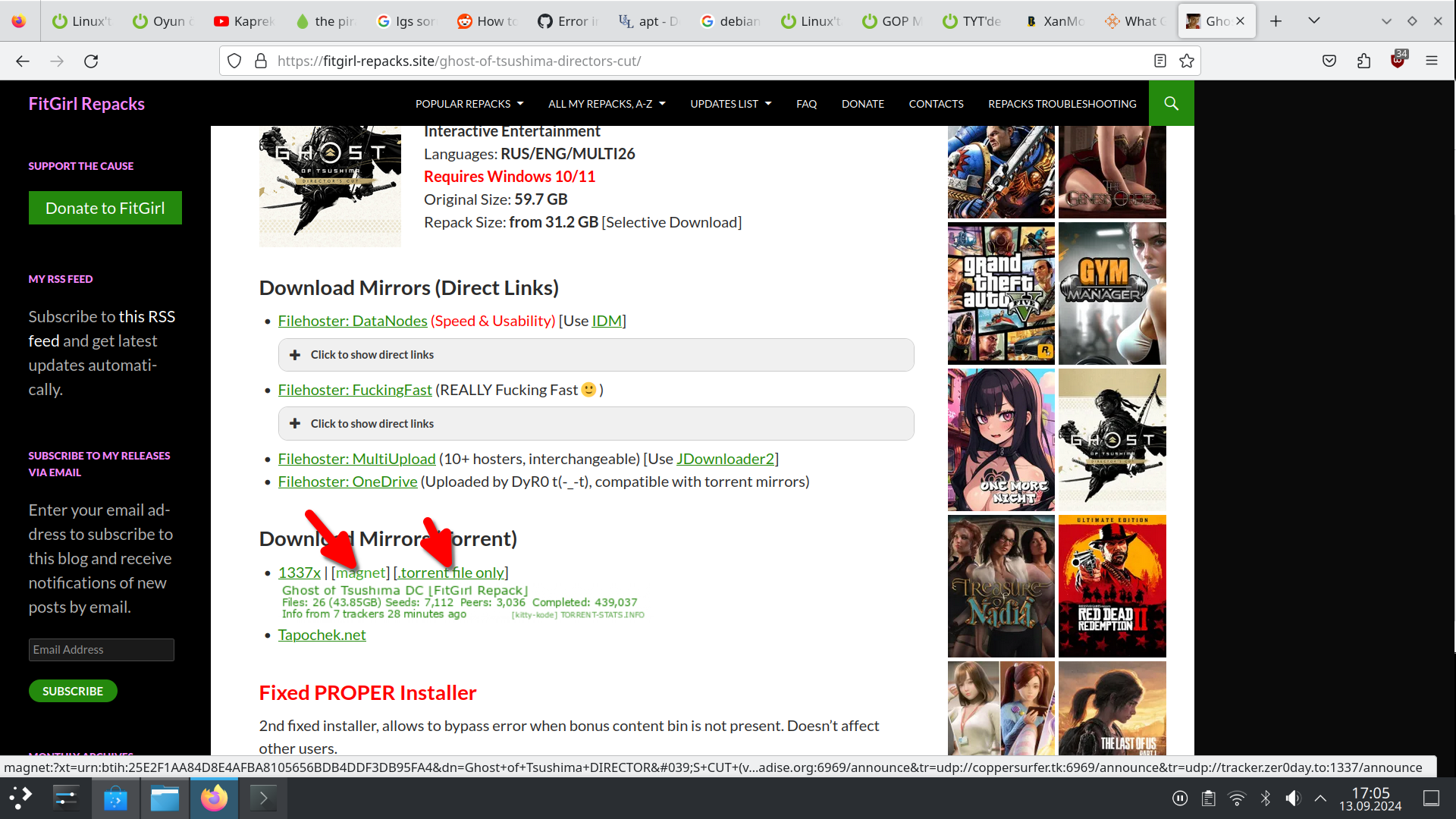 Download Mirrors'da magnet ve Torrent file olur. uTorrent falan yüklüyse Magnet'e tıklayın direkt istemciniz açılır.