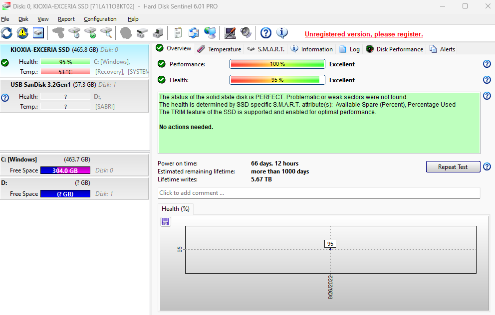 Hard Disk Sentinel Pro ile diskiniz sıcaklığını ve sağlık değerini ölçebilirsiniz.