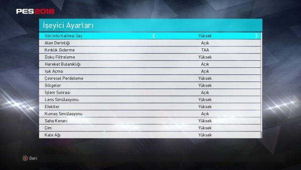 Ben oyunu ilk yüklediğimde yüksek grafiklerde ayarlıydı, bunun yanında orta ve düşük ayarları vardı. Ayarlar şu şekilde: