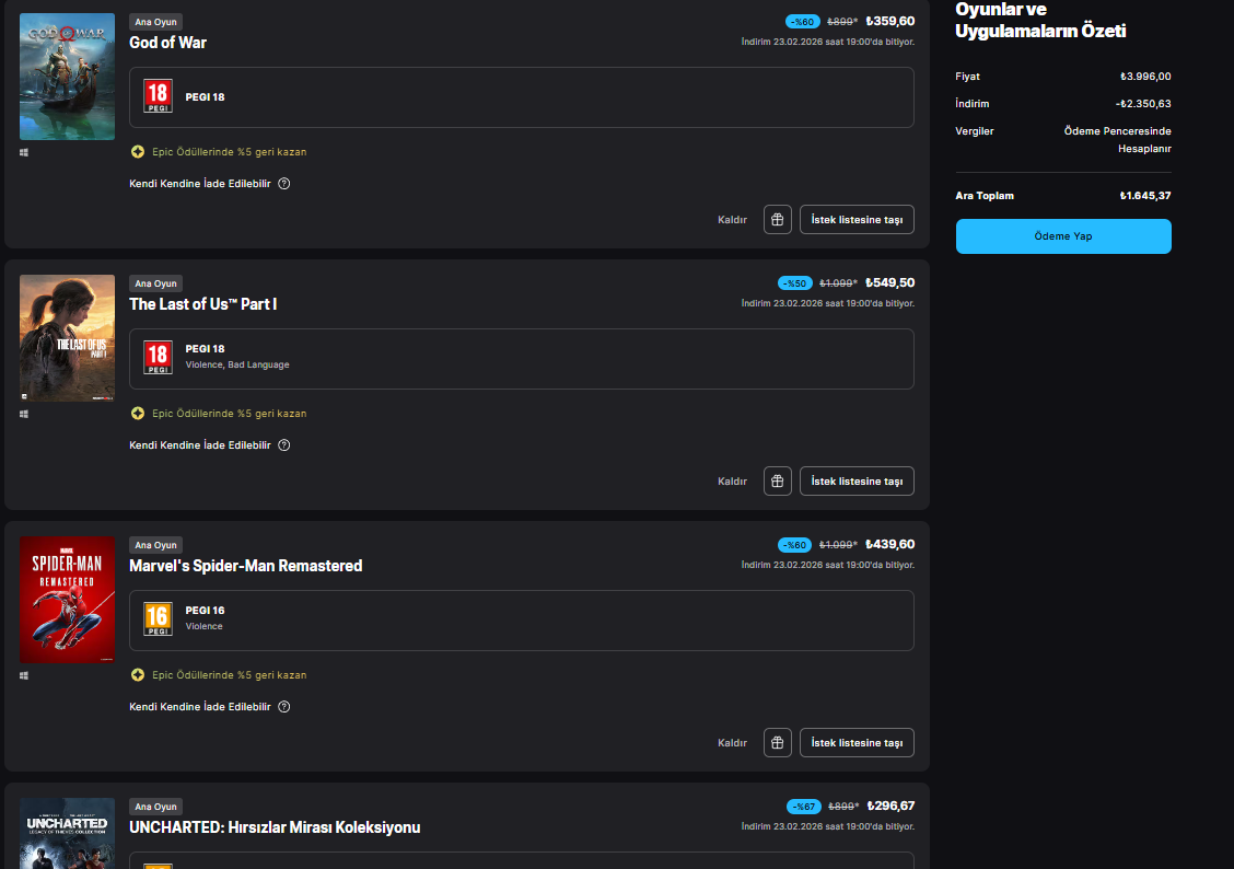 Steam sepeti icin oynamadigimdan dolayi yorum yapamam ama Epic sepeti fiyatina deger kesinlikle. @alasakarama'nin attigi sepeti tercih ederdim ben.