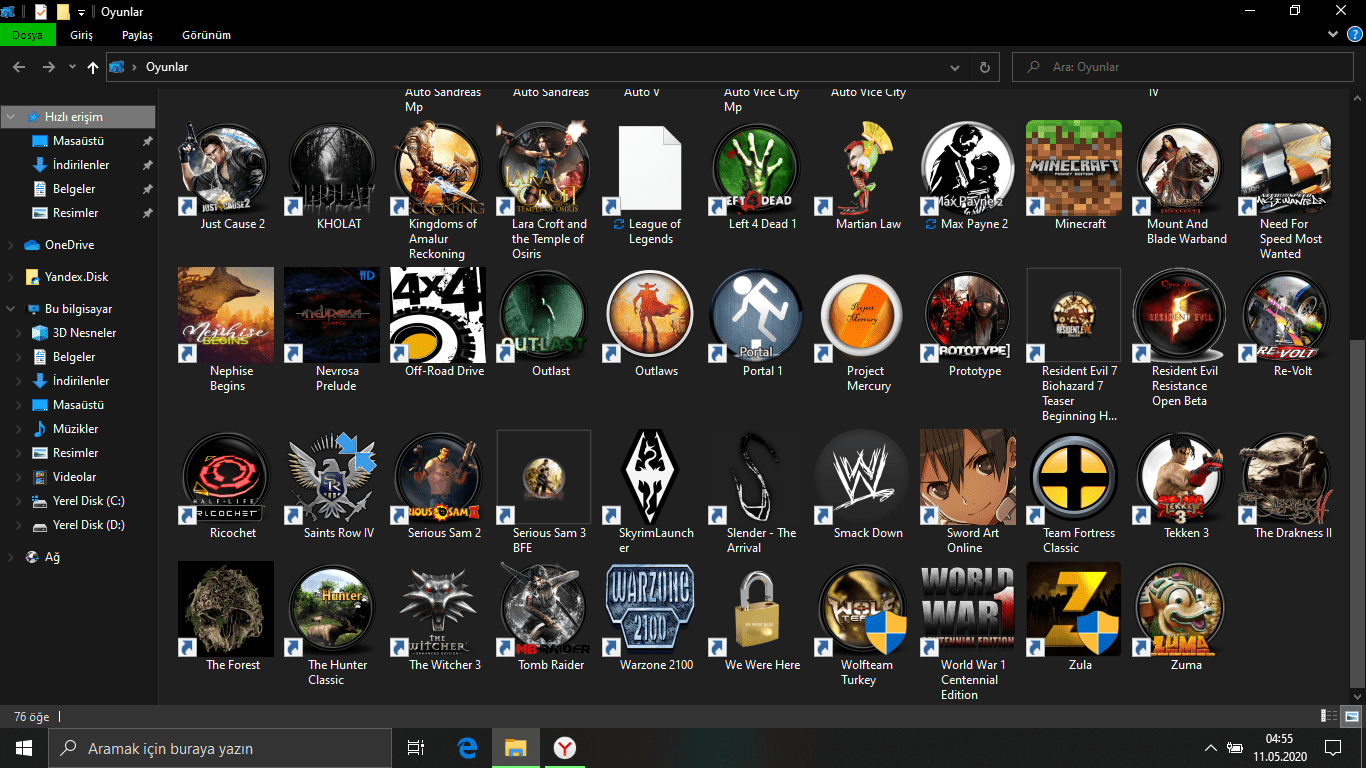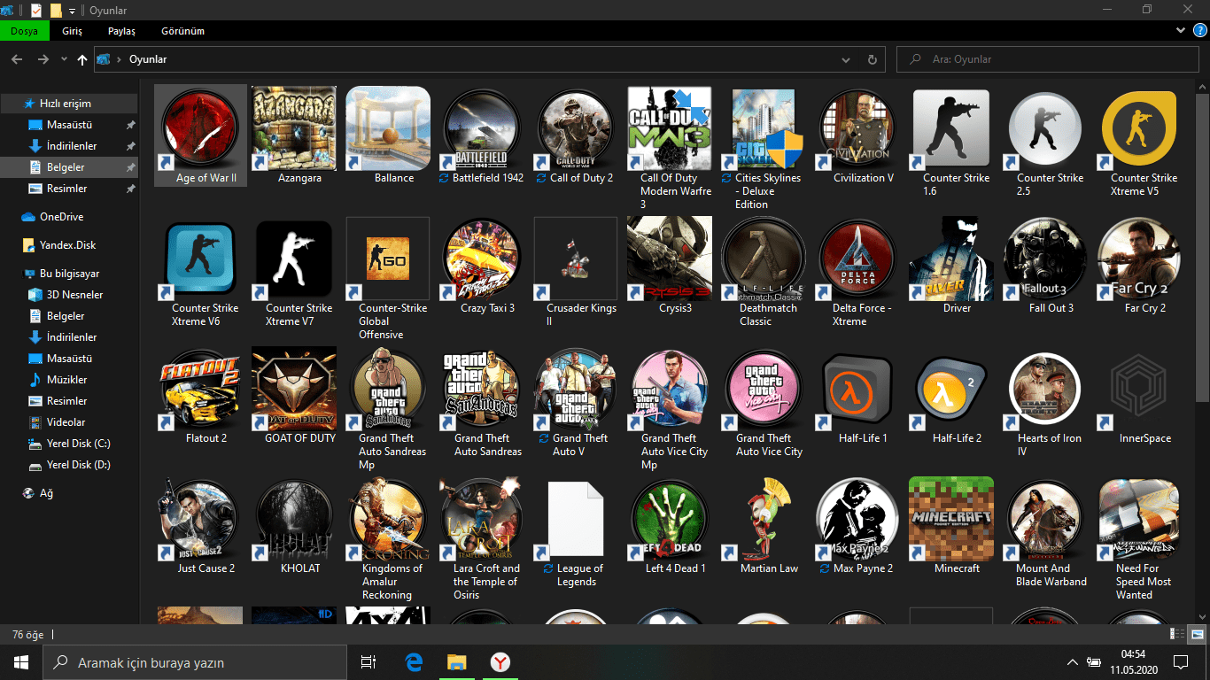 Cities Skylines / Civilization / left 4 dead / League of Legends / Grand theft Auto / Mafia / Call of Duty / Battlefield / counter-strike / The Witcher / Flatout / Dirt / Driver / Crysis / Half-Life / Prototype / The Darkness / Max Payne / Fallout / Delta Force / Crazy Taxi / Euro Truck Simulator / Assasin's Creed / Age of War / Warcraft / Outlast / The Returned / The Forest / Scum / Skyrim / Sekiro / Total War Shogun / Tomb Raider / Just Cause / Serious Sam gibi oyunlar oynadım ve PC'de aşağıda görüldüğü gibi yüklüdür. Şimdi sizden tek isteğim beni böyle heyecanlandıracak oyun önerileri şu aralar canım sıkılıyor malum COVID-19 virüsü var ondan size sorayım dedim tavsiyeniz için şimdiden teşekkür ederim.