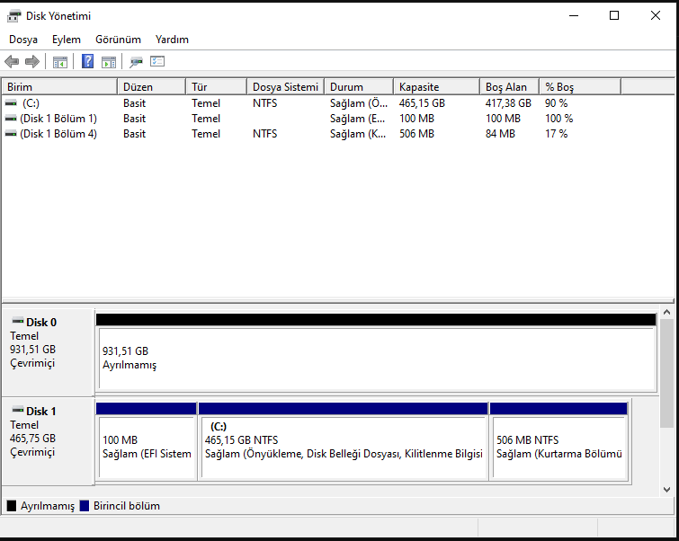 Dosya gezginine giriyorum sadece SSD çıkıyor hard disk gözükmüyor.