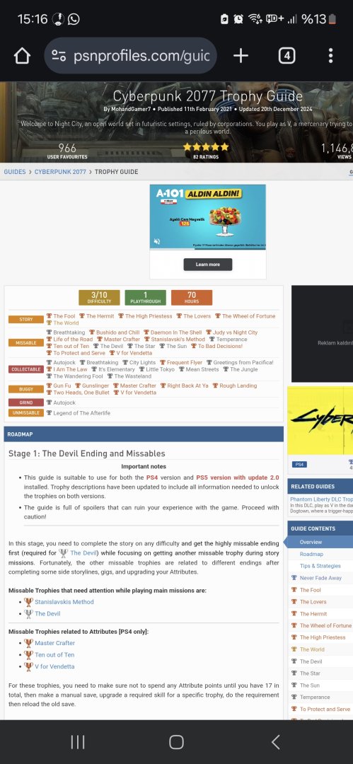 Şimdi Cyberpunk'a başladım, bu oyunu platinlemek istiyorum. Nasıl bir yol izlemeliyim?