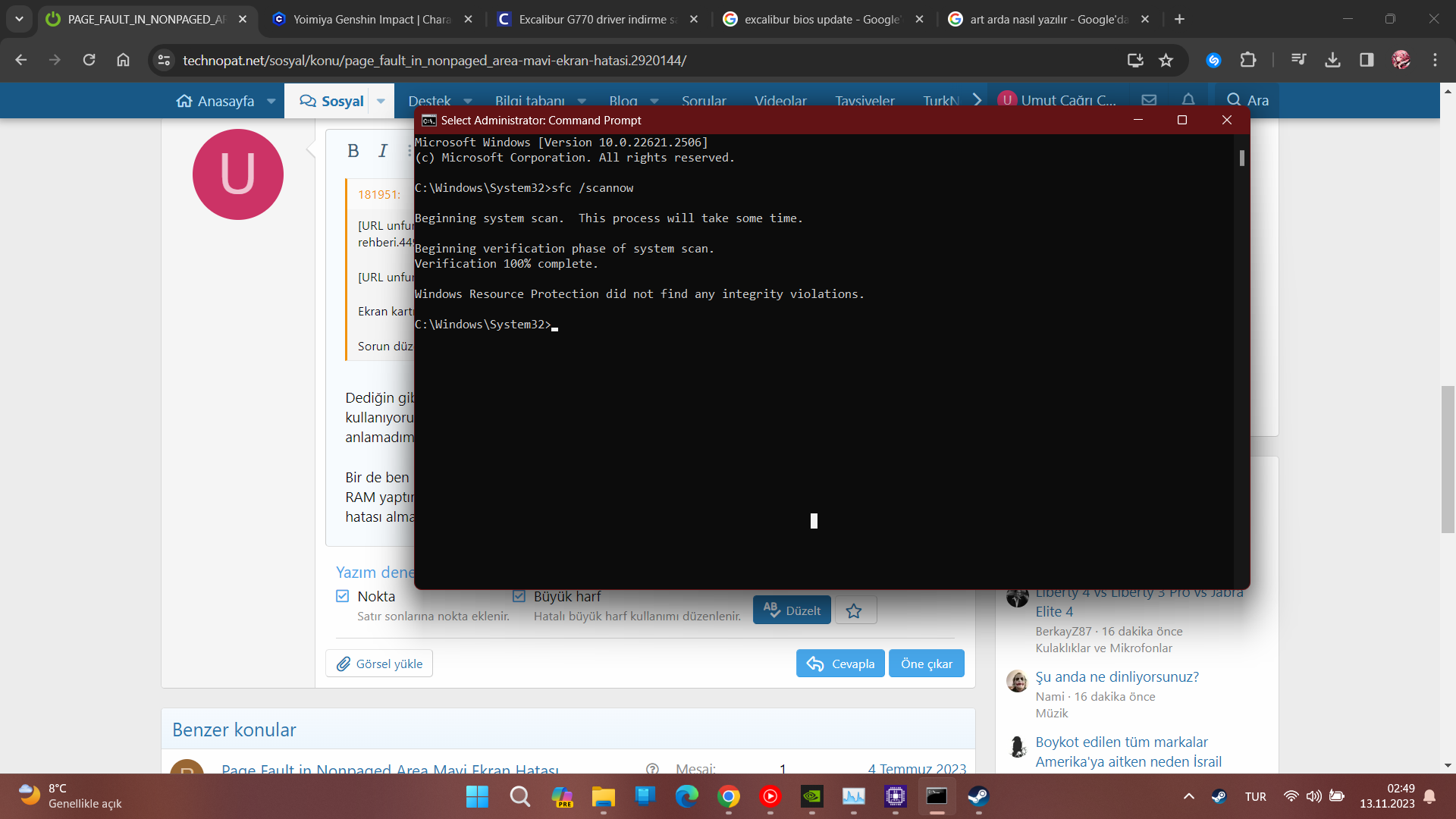 BIOS Update ve formattan bir süre sonra bu mavi ekran hatasını almaya başladım. Daha öncesinde hiç mavi ekran hatası vermemişti. Hatta bu yazıyı yazarken 2 defa aynı mavi ekran hatasını verdi. Sonuncuyu yükleyemedim ama aynı hata kodu yazdı.