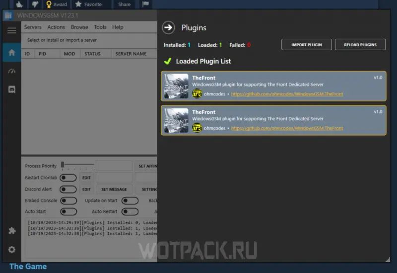 - “Eklentileri Yeniden Yükle” düğmesine tıklayın veya WindowsGSM'yi yeniden başlatın.