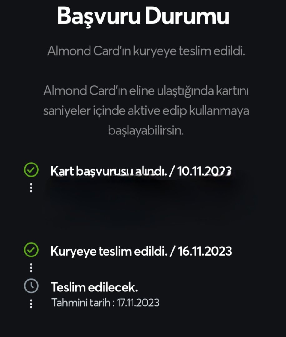 Kurye teslim aldı ancak 17'sinde teslim etmesi gerekirken 2 gün oldu, hala ortalıkta yok. Kartım nerede kısmına bastığımda bilgilerimi giriyorum, siparişiniz bulunmadı yazıyor. Ne zaman gelir benim kartım?