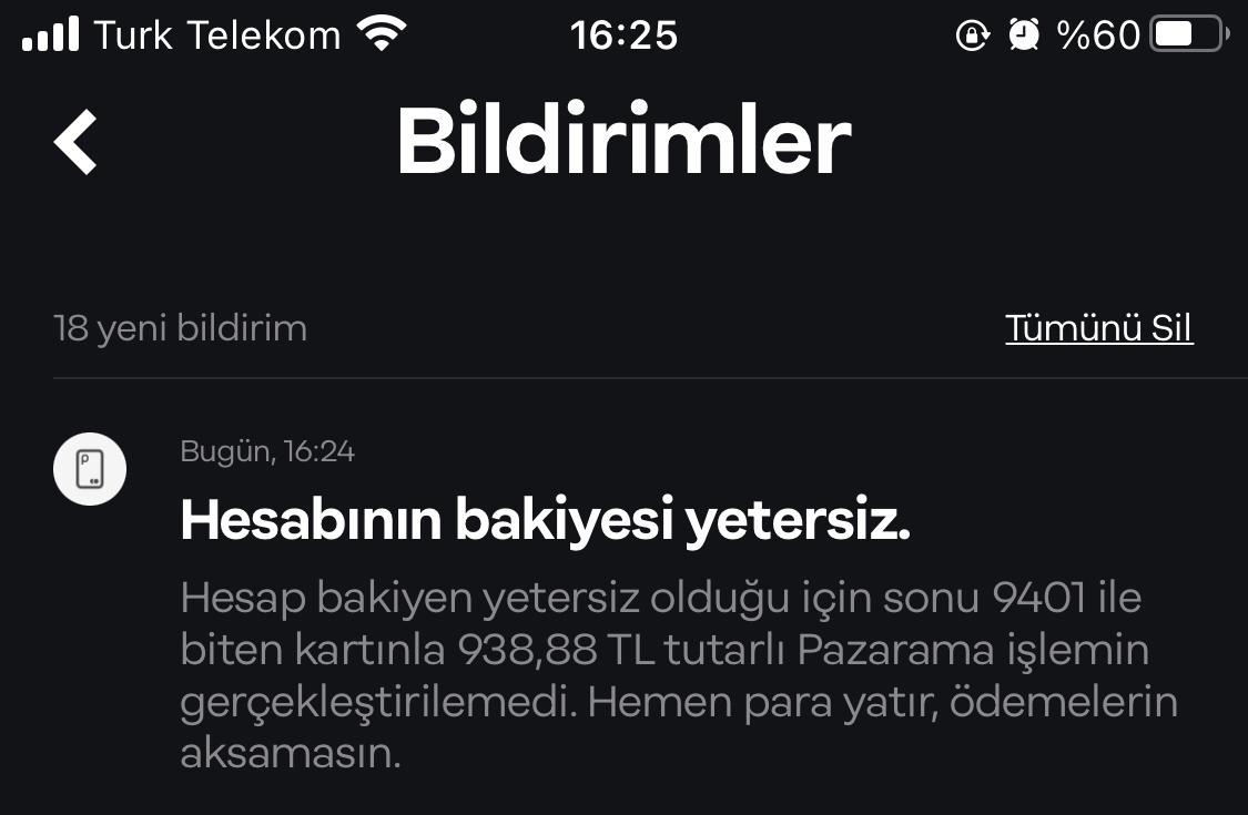 Fotoğrafını eklediğim bildirim geldi. Pazarama hesabımdan bir powerbank alınmaya çalışılmış. Sırasıyla şunları yaptım: