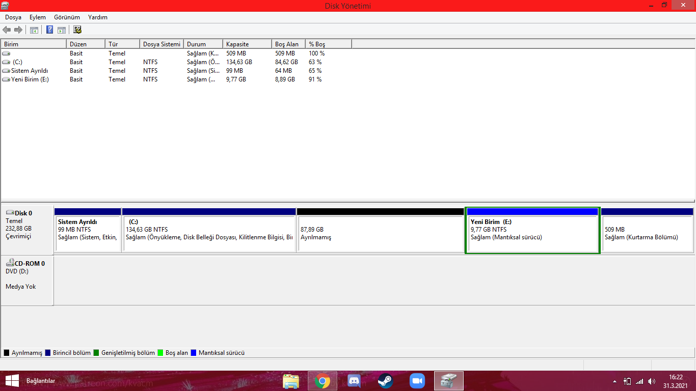Böyle. E ye karışmayın dosyalar var. Ayrılmamış alana yüklemeye çalışıyorum.