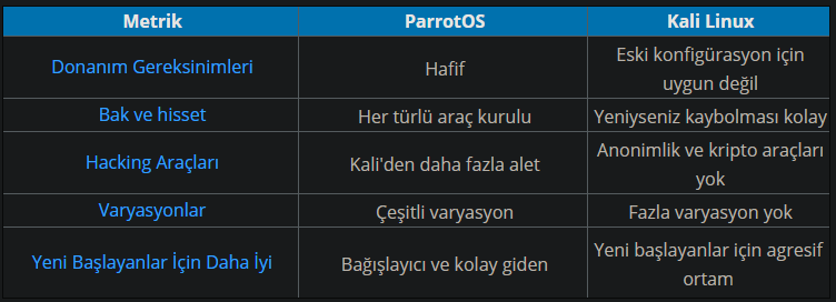 Kaynak:ParrotOS vs Kali Linux: How to choose the Best | Edureka Sizin için ParrotOS daha iyi gibi.
