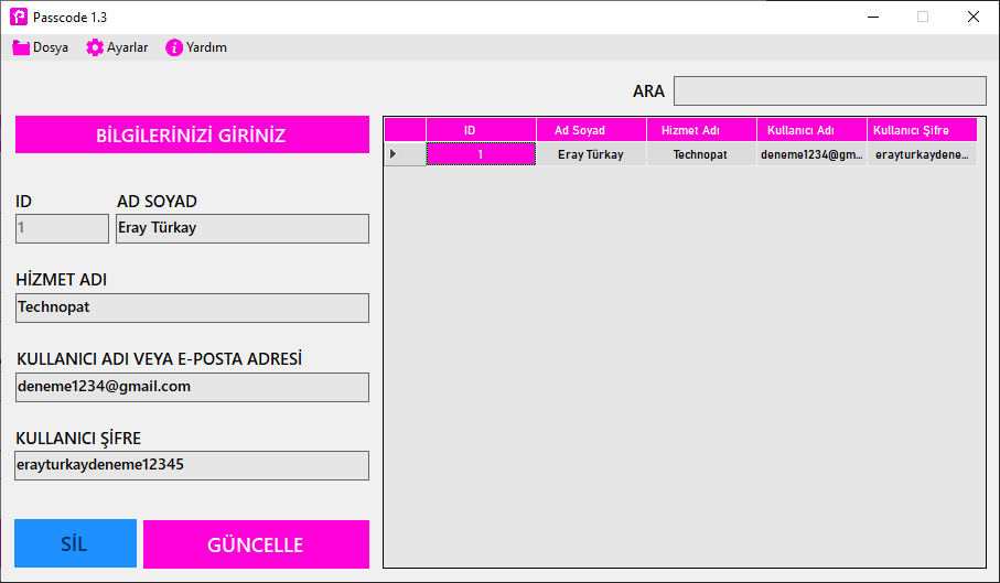 Not: Veriler yerel makine içinde şifreli şekilde tutulur. Uzak bir makine veya sunucu ile bağlantısı yoktur.