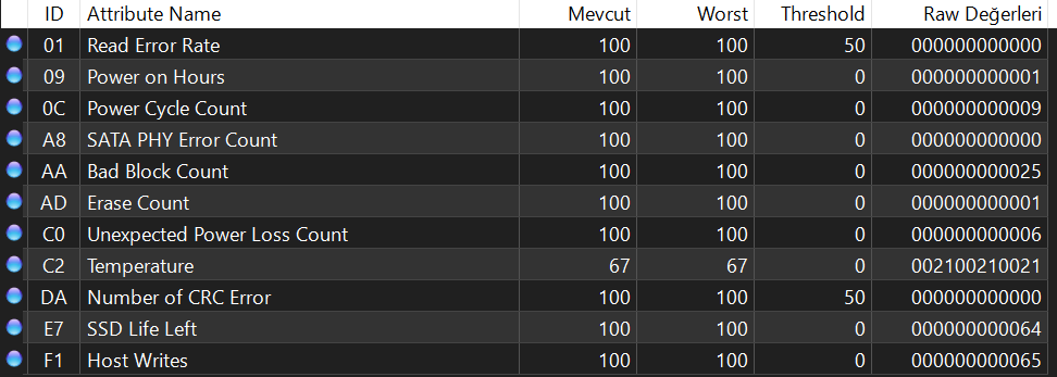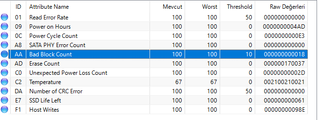 Sorun değil. Ben de daha az varmış :d 24 tane var bende. Bunlar üretim sırasında oluşan bad blocklar, bir sorun teşkil etmiyor. Later Bad Block Count önemli olan, bu değer artarsa SSD biraz sıkıntılara gidiyor denebilir.