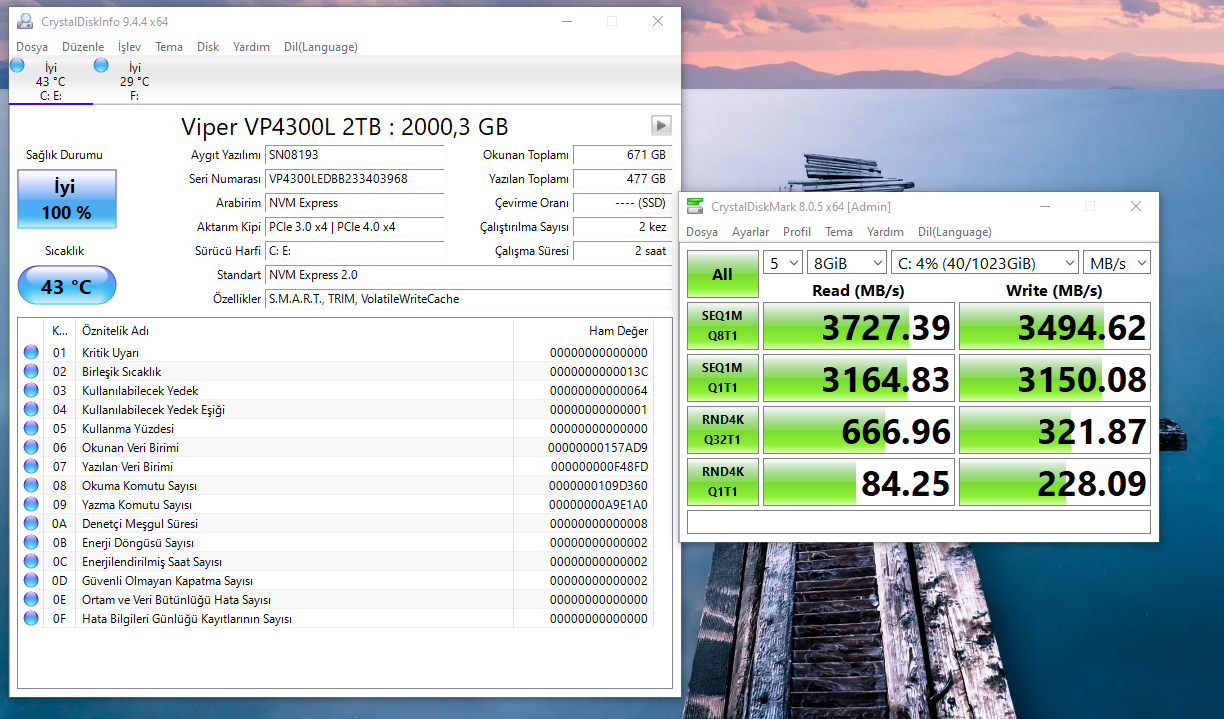 Patriot VP4300 Lite M.2 SSD aldım 3700 hızdan yukarı çıkmıyor neden olabilir? Fotoğraftaki benim hızım.