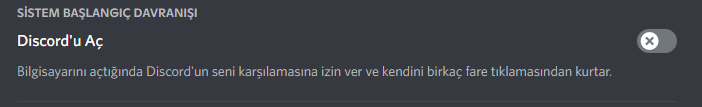 Her bilgisayarı başlattığımda Discord açılıyor otomatik olarak.