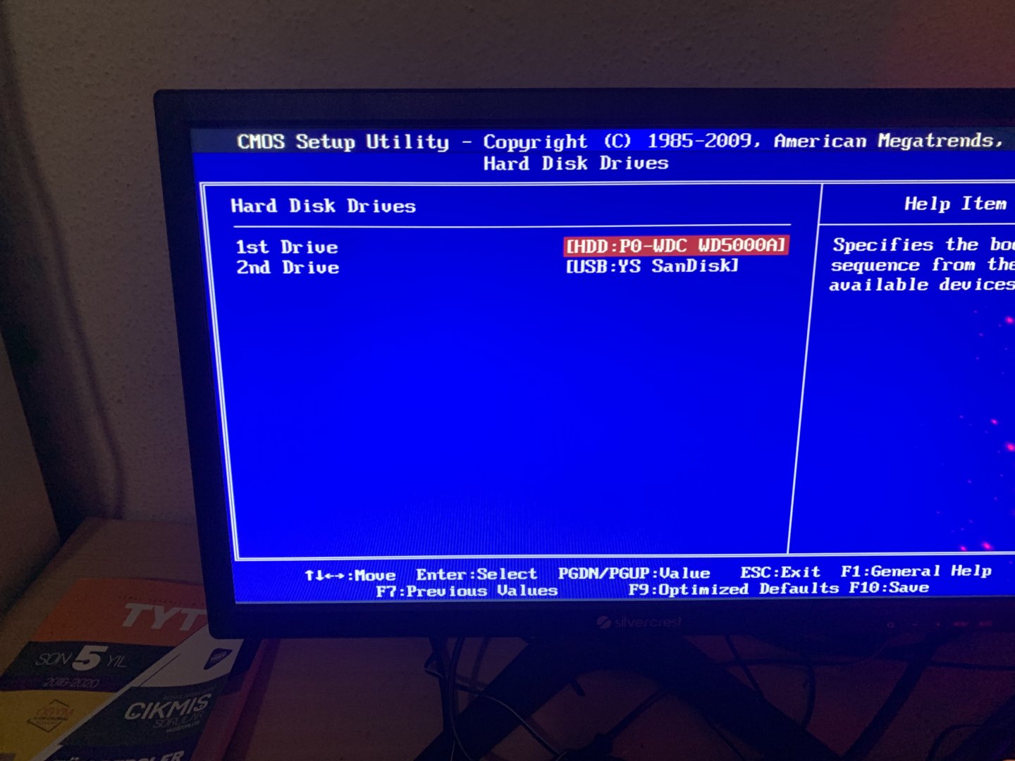 Bu yerden bootdeviceden HDD'yi seçip yeniden başlatır mısın?