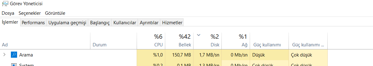 Yüzde 1 olarak gösteriyor ve uygulamaların güç kullanım çok düşük ve çok nadir de orta olarak gözüküyor.