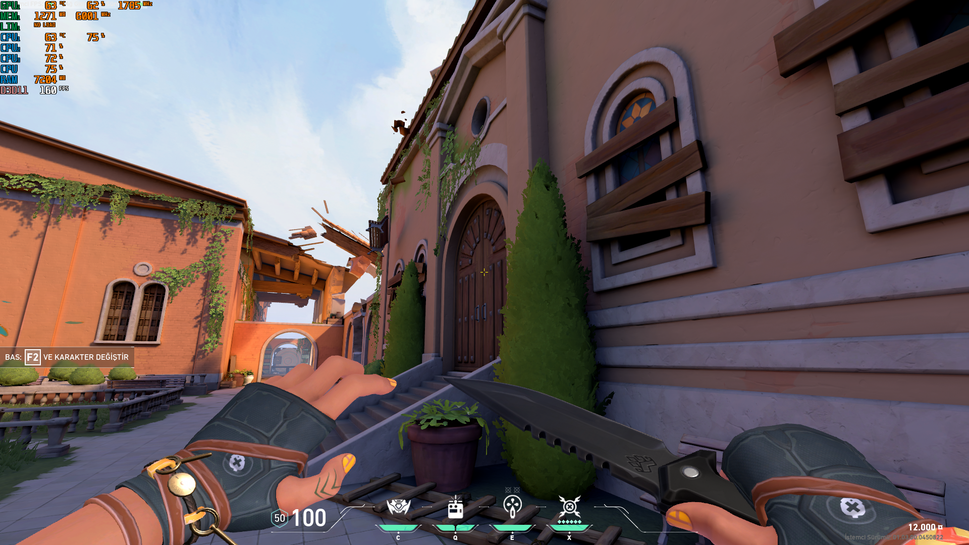 Valorant ta durumlar böyle ve PC ısınmadı hala.İşlemci bazen %90 lara falan çıkıyor ama 7-8 tane bot ekrana girince fps düşüyor. GPU Memory yanlış bilmiyorsam GTX 1650 de 4GB olması lazım ama burda 2GB yi geçmedi.Lütfen yardım edin