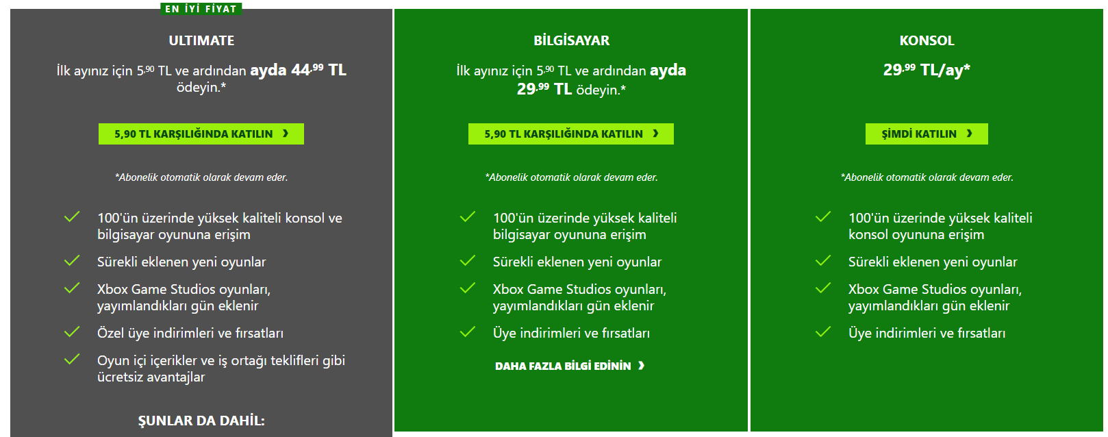 PC için 1+2 aylık Gamepass ilk kez alanlar için 05.90 TL şurada göründüğü gibi: