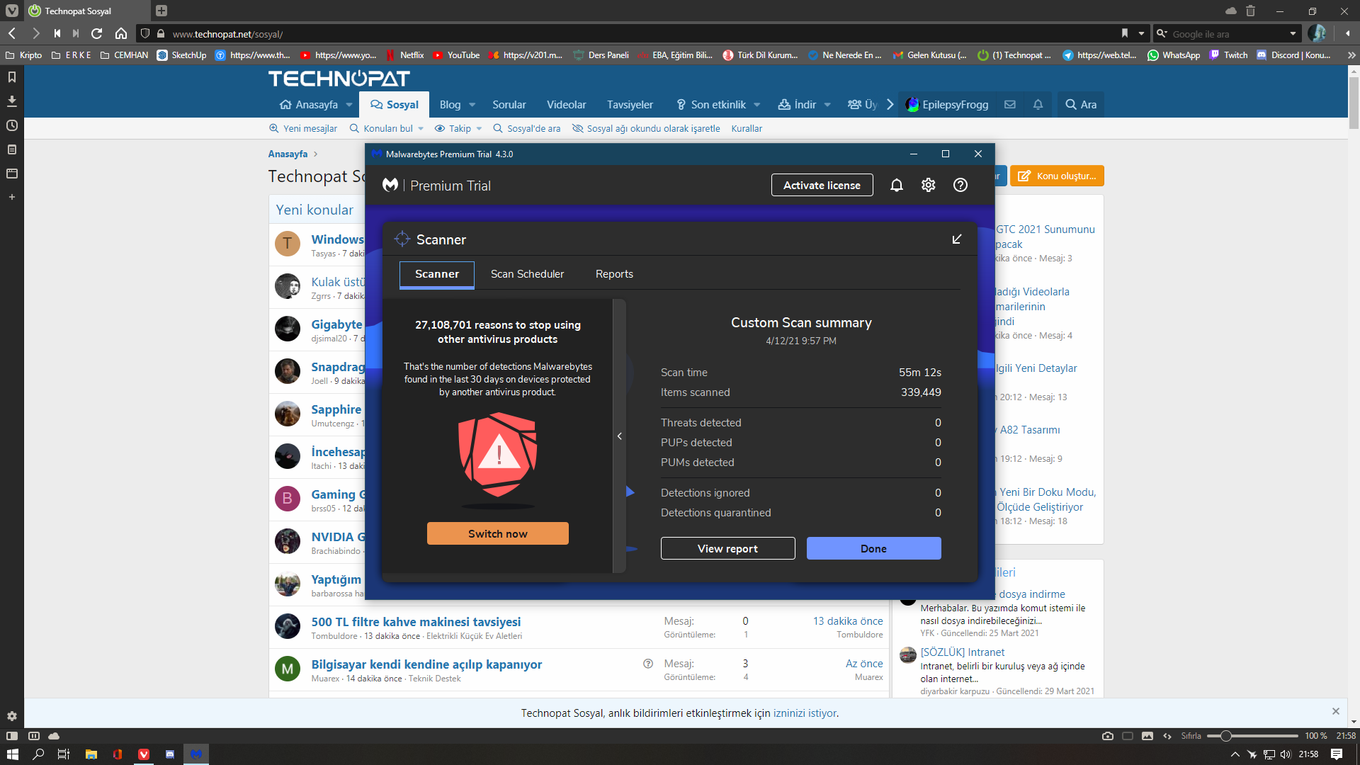 Malwarebytes ile taramayı dene bir de. O dosyaya erişilemiyor hatası ve Windows Defender'in açılması pek hayra alamet değil.